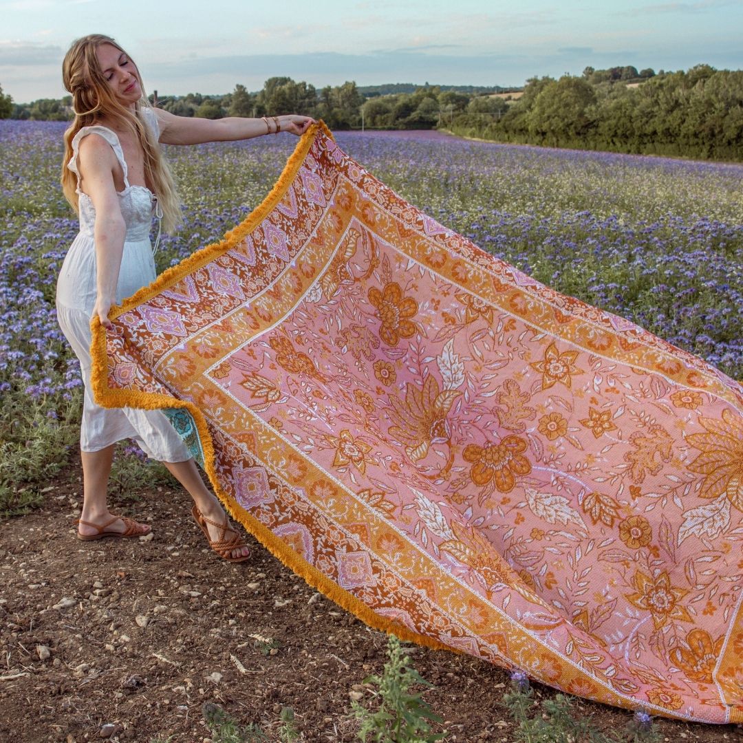 ''Absolutely stunning! Material is better than I imagined and the size of the rug is perfect for picnics. I’ll be using them both all summer long 🌺''