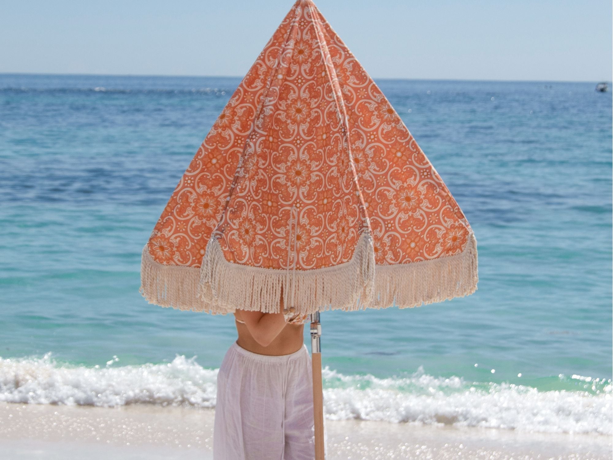 We're back with a new collection of recycled and sustainable beach umbrellas that are better, and more beautiful than ever. We’ve added new designs, patterns and colours to our collection of beach umbrellas. Each sun umbrella features a long, sturdy handle and comes with a matching carry bag so you can easily throw it over your shoulder to bring it with you on any trip!