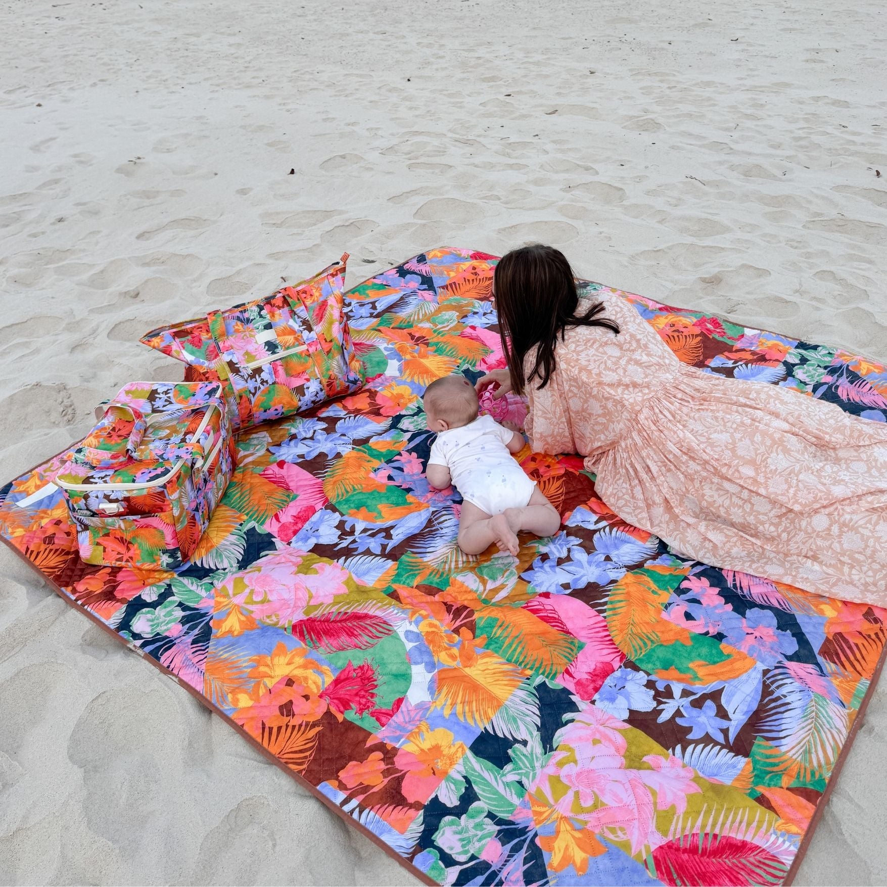Each canvas beach bag is unique and perfectly compliments your beach towel, beach chair, beach umbrella, cooler bag, woven picnic rug, canvas picnic rug, boho cushion and picnic glassware.