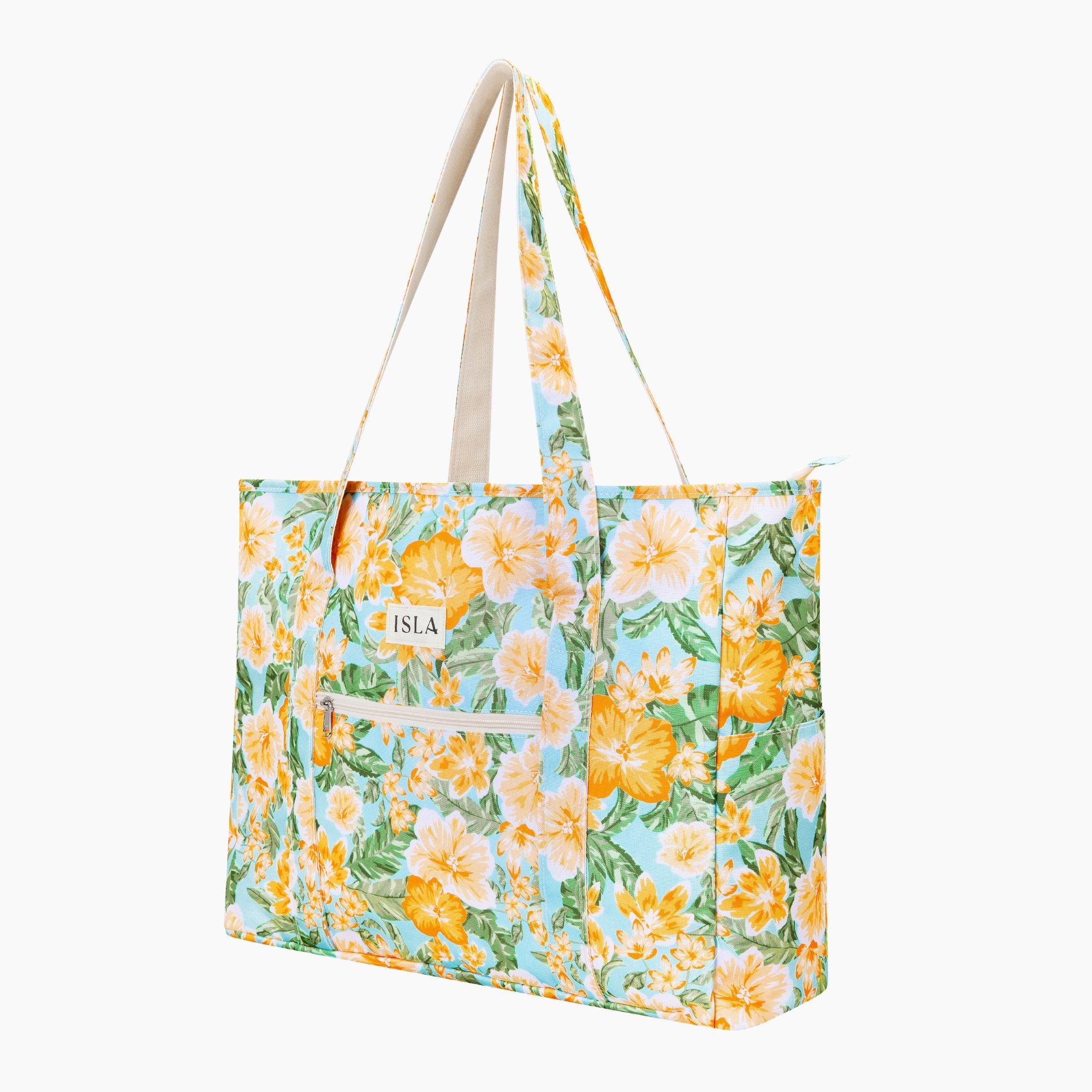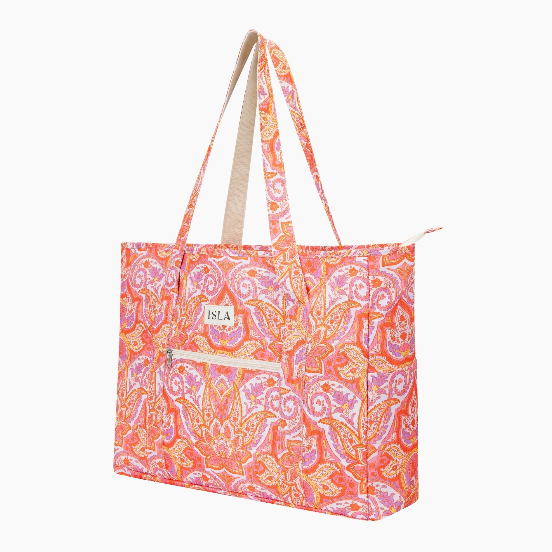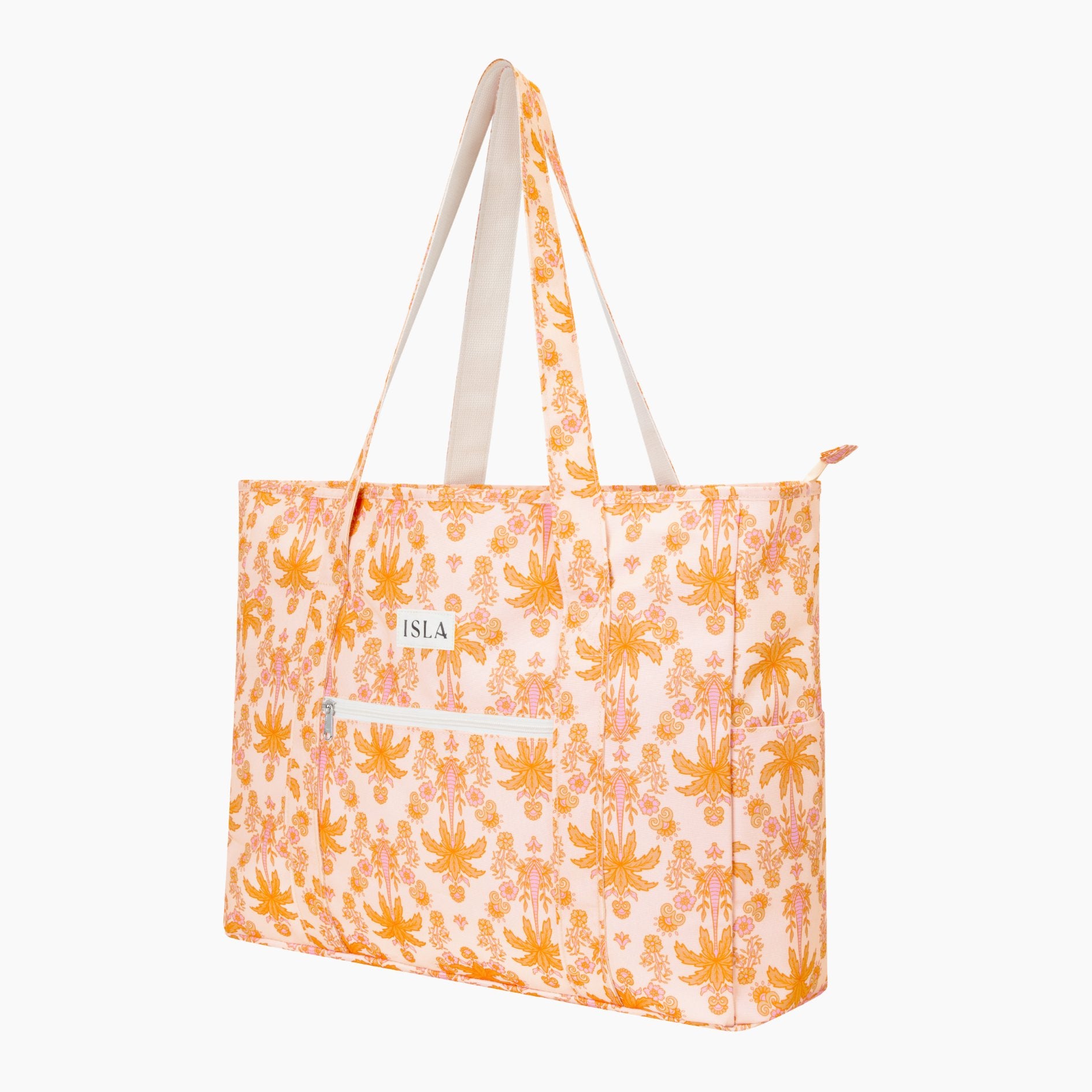 The oversized tote has an adjustable strap that can be worn over the shoulder or cross-body. It also has an interior lining that can be wiped down so you don't have to worry about anything getting wet, dirty (or sandy).