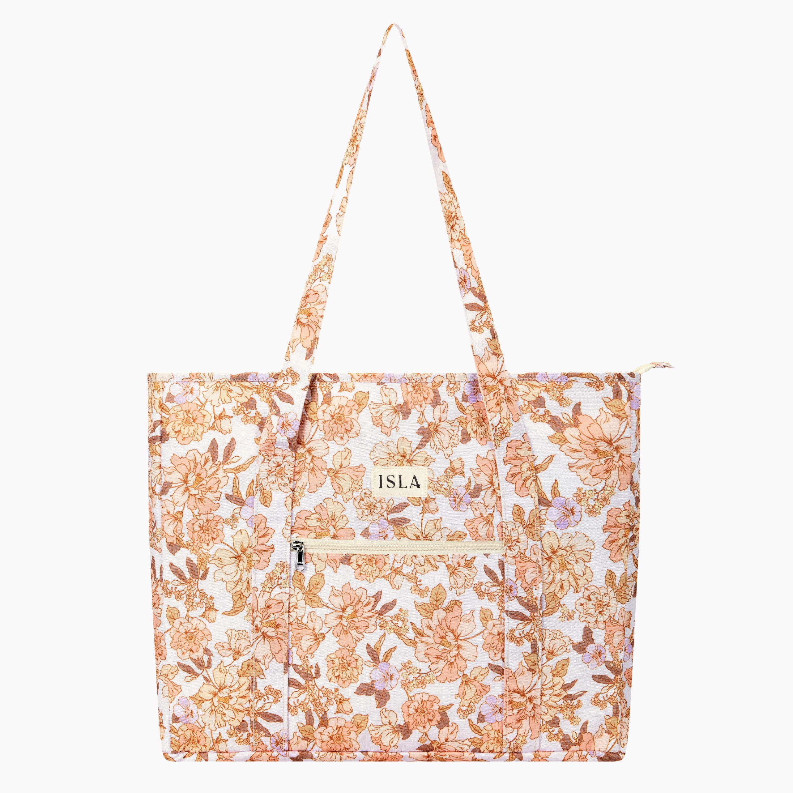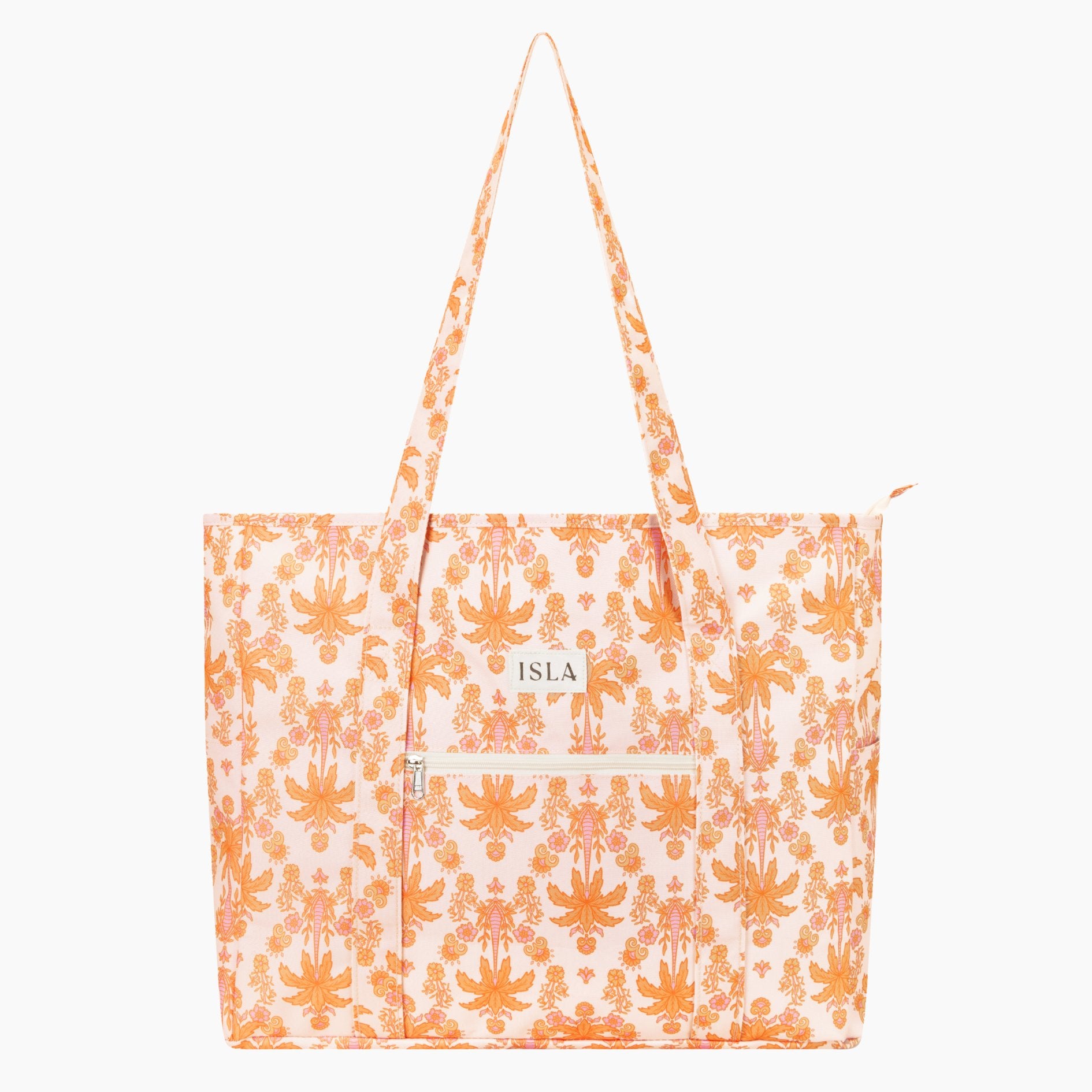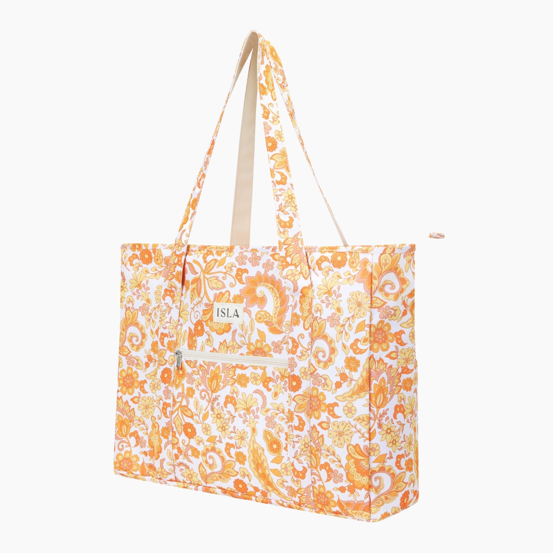 The oversized tote has an adjustable strap that can be worn over the shoulder or cross-body. It also has an interior lining that can be wiped down so you don't have to worry about anything getting wet, dirty (or sandy).