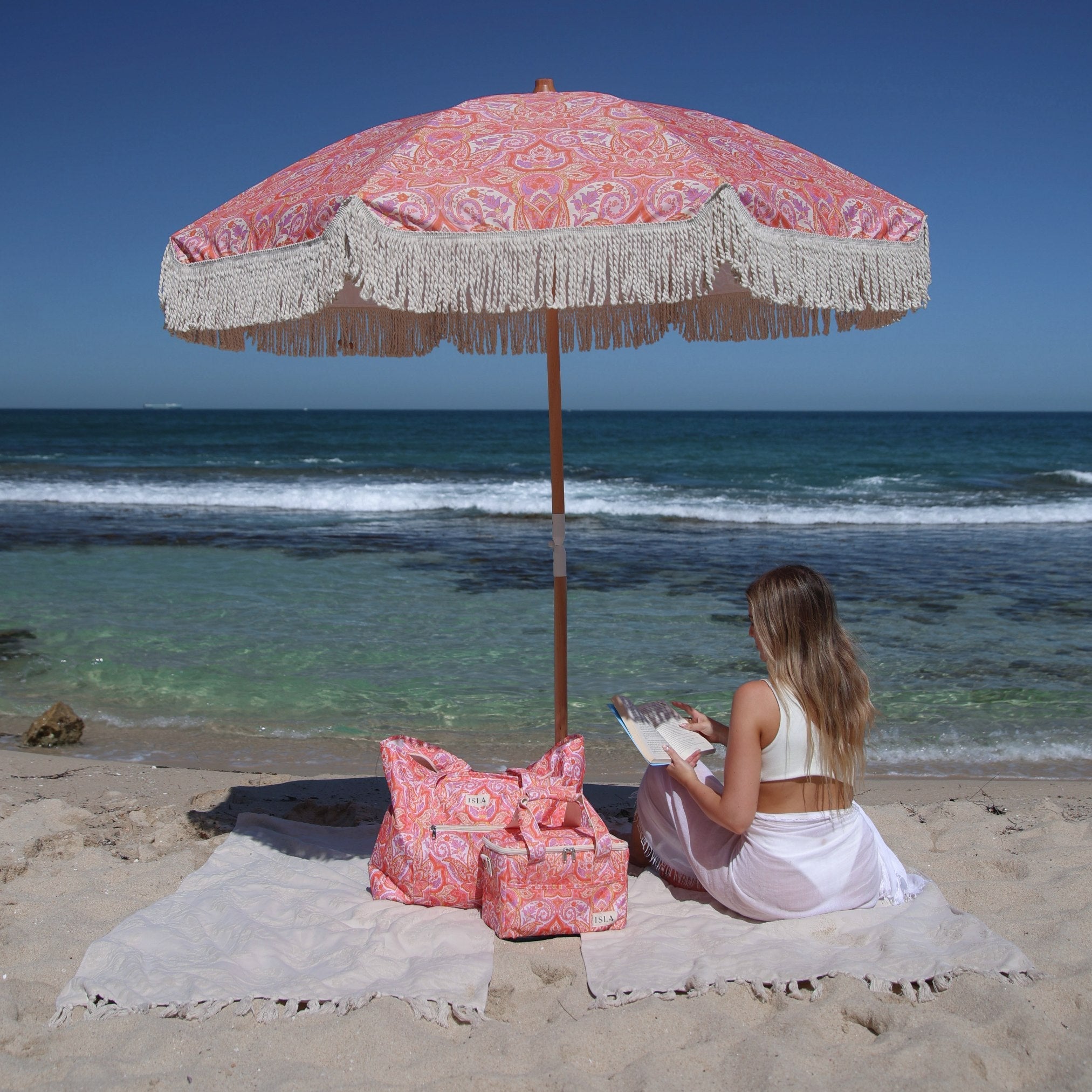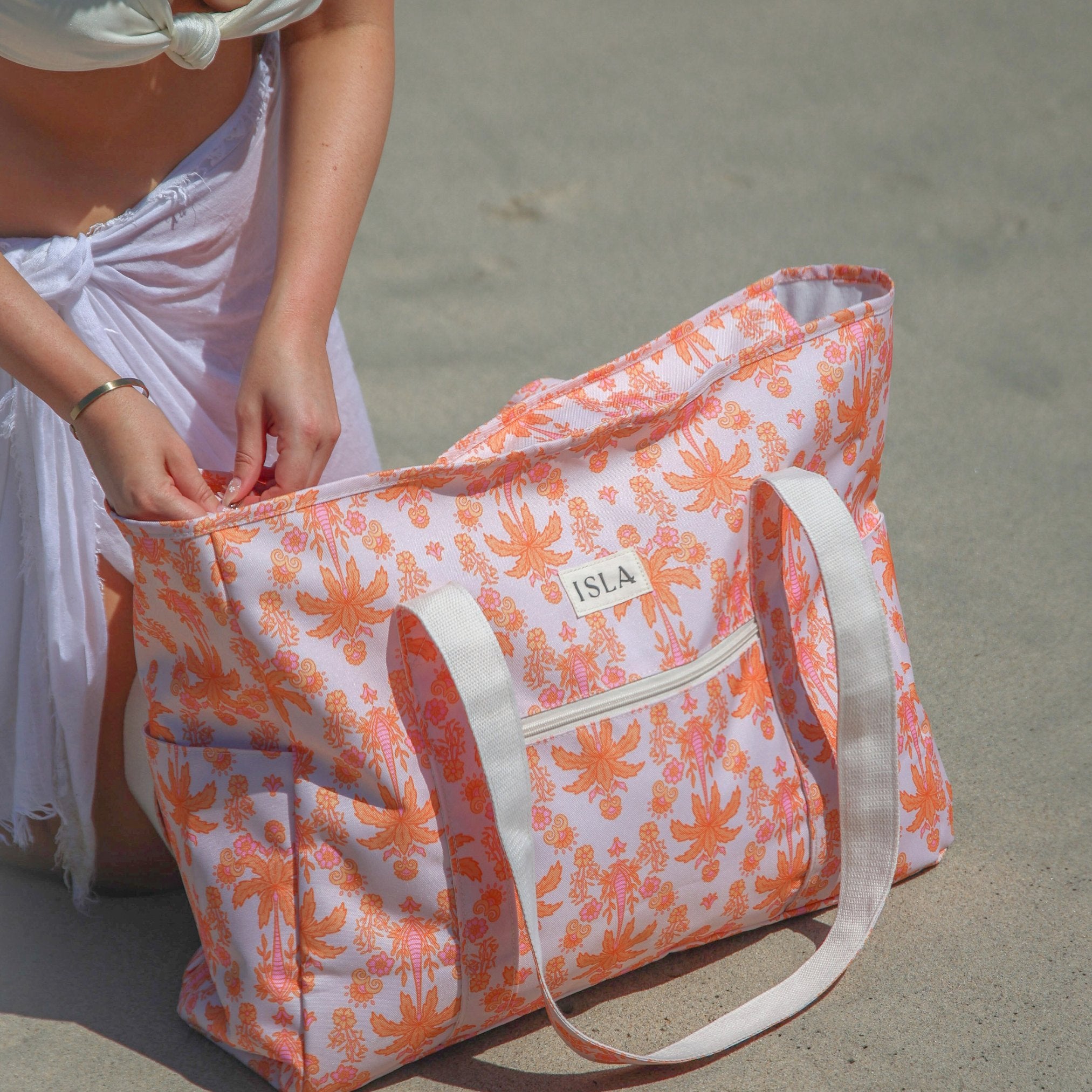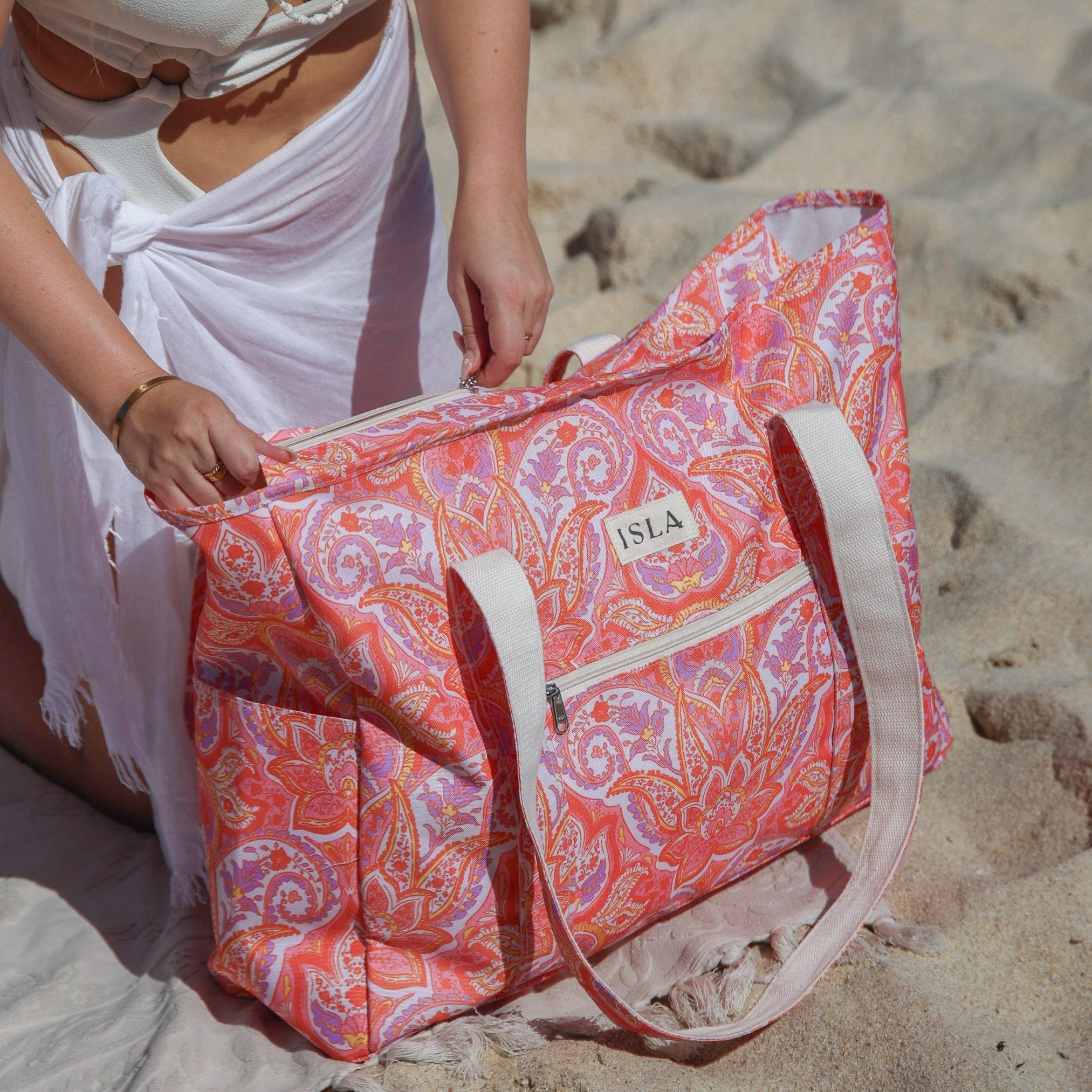 Each canvas beach bag is unique and perfectly compliments your beach towel, beach chair, beach umbrella, cooler bag, woven picnic rug, canvas picnic rug, boho cushion and picnic glassware.