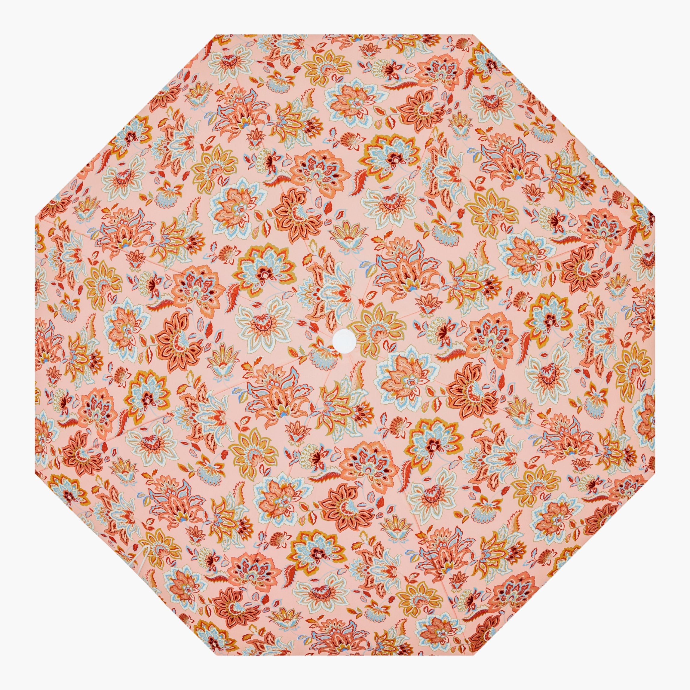 Our Bellflower beach umbrella is adorned in flowing bohemian florals against a soft peach backdrop. Crafted from UPF50+ premium fabric with a tilting canopy, it’s built for style and durability. Complete with a matching carry bag, Bellflower delivers effortless shade, comfort and an elevated look for long, sun-filled days by the water.