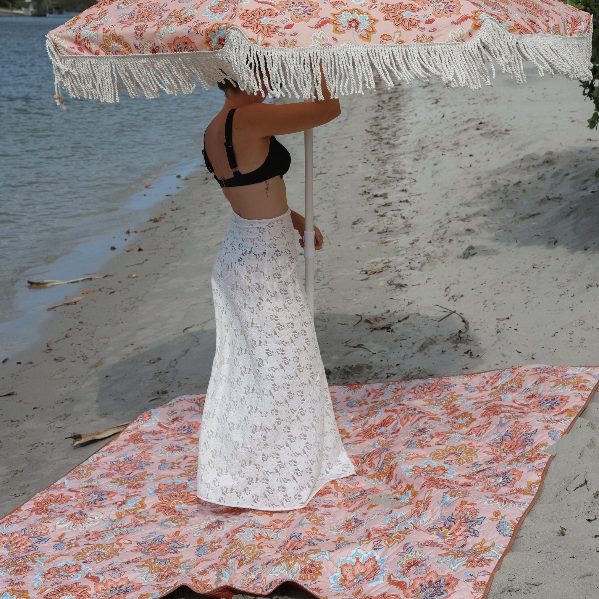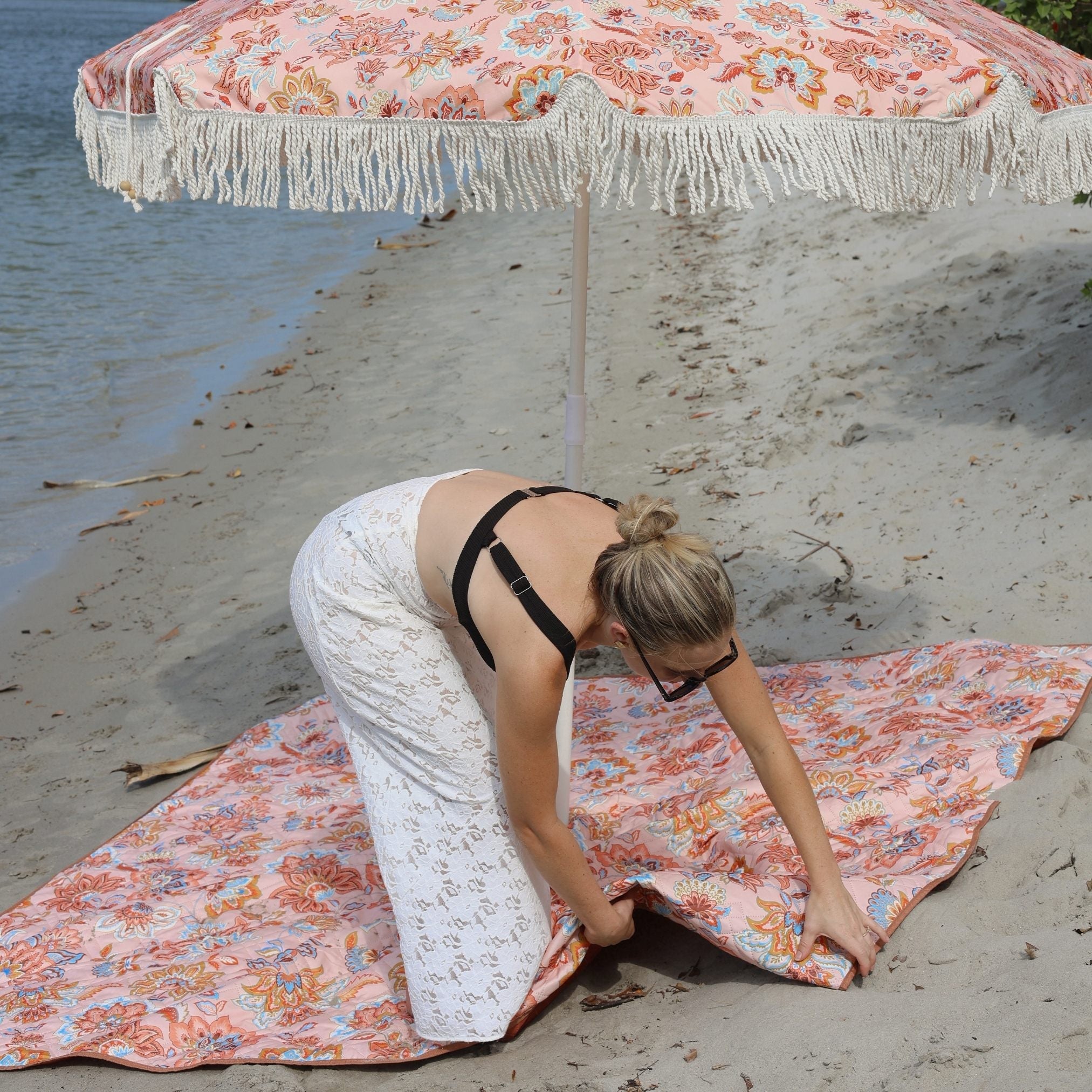 The Bellflower Waterproof Picnic Rug is adorned in chintz style bohemian florals against a soft peach backdrop. Designed for comfort and durability, its waterproof top and base makes outdoor gatherings effortless and carefree. Lightweight and easy to carry, it’s the perfect companion for family days, park picnics, and beach escapes.