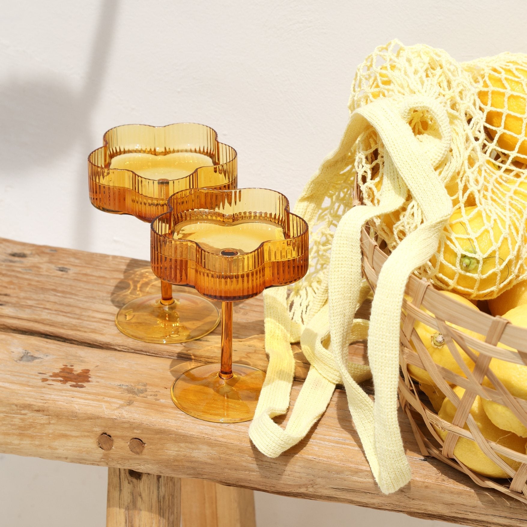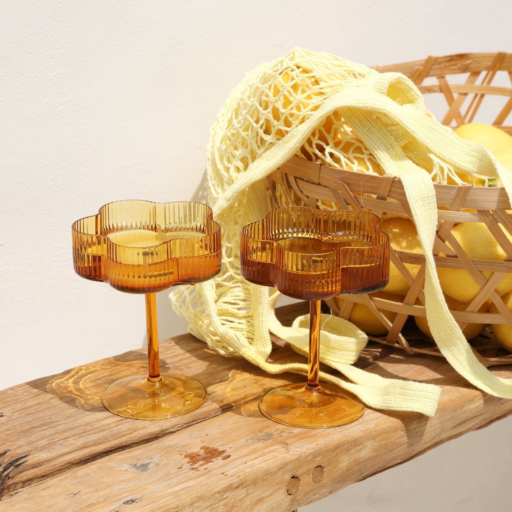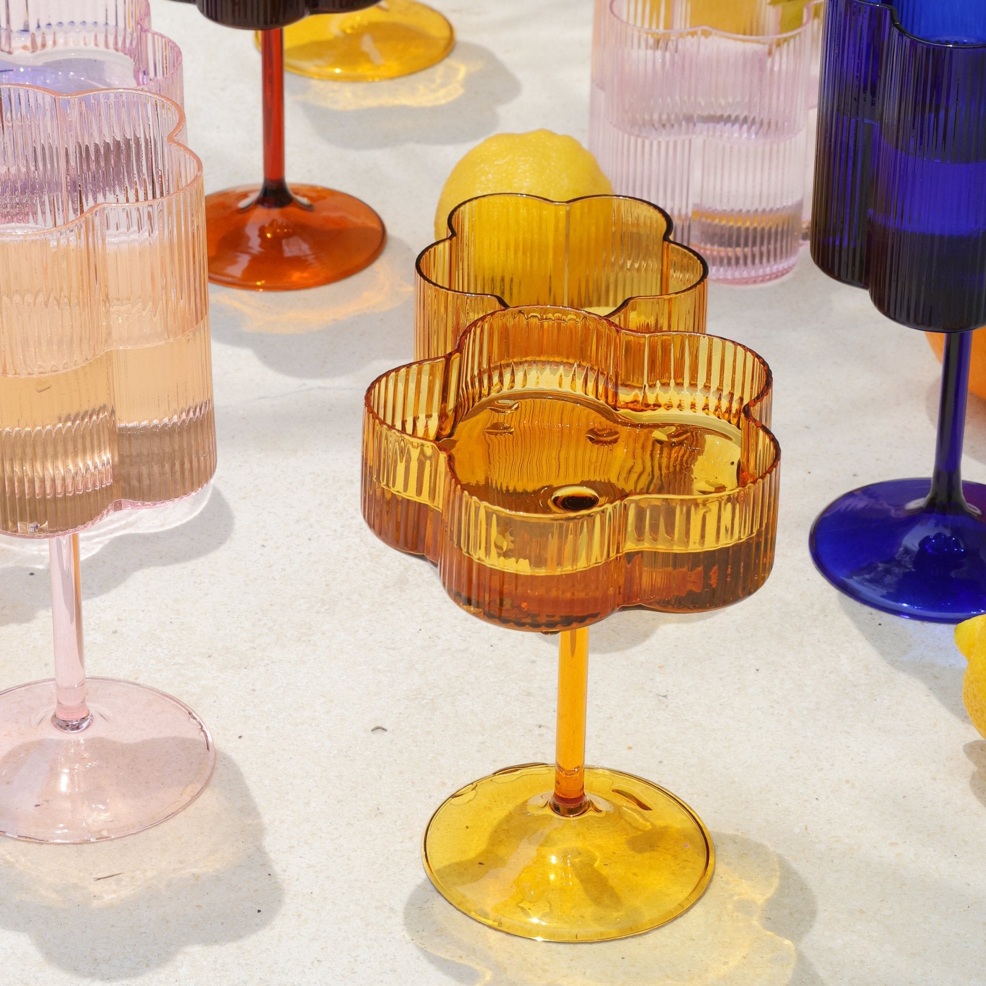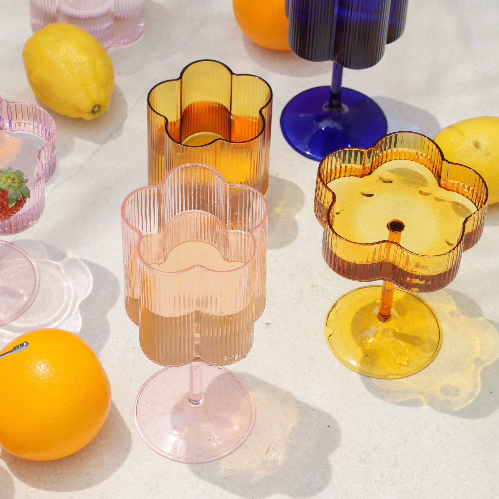Uniquely crafted, flower-shaped glassware for picnics, parties and whimsical elegance at home.