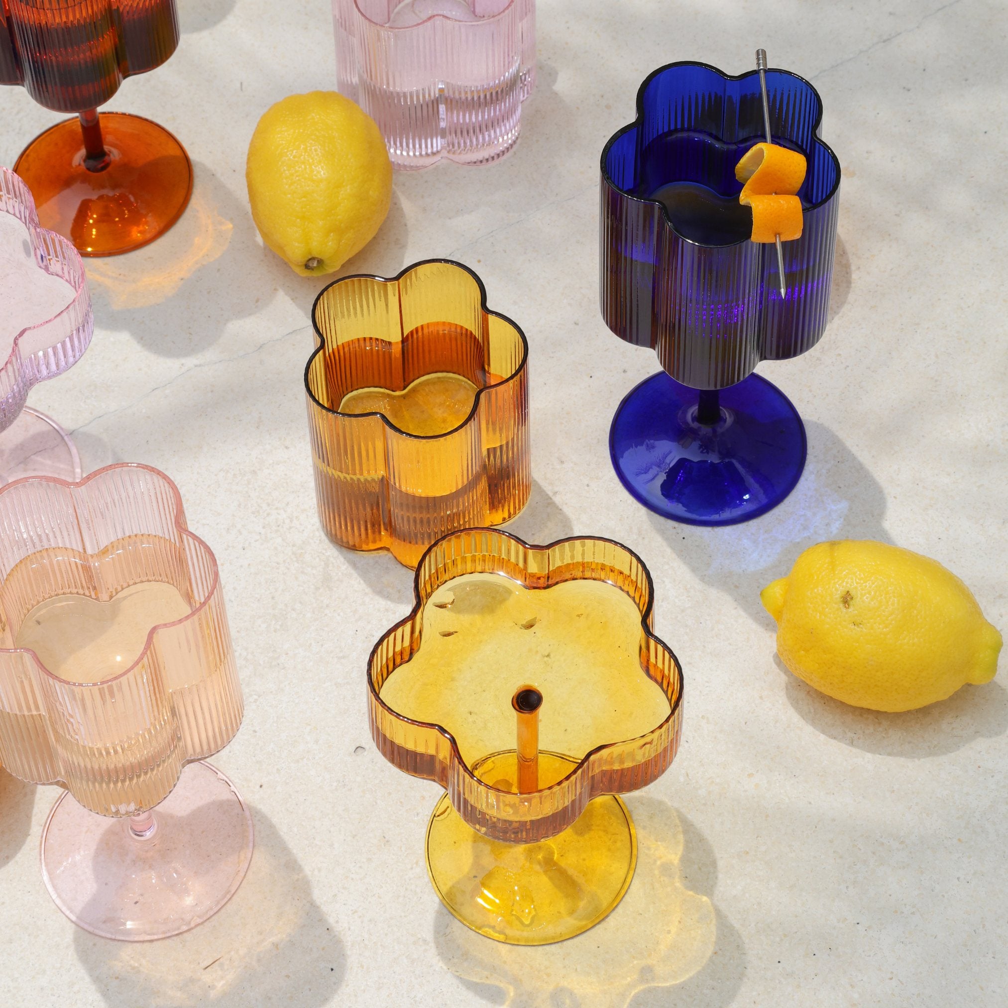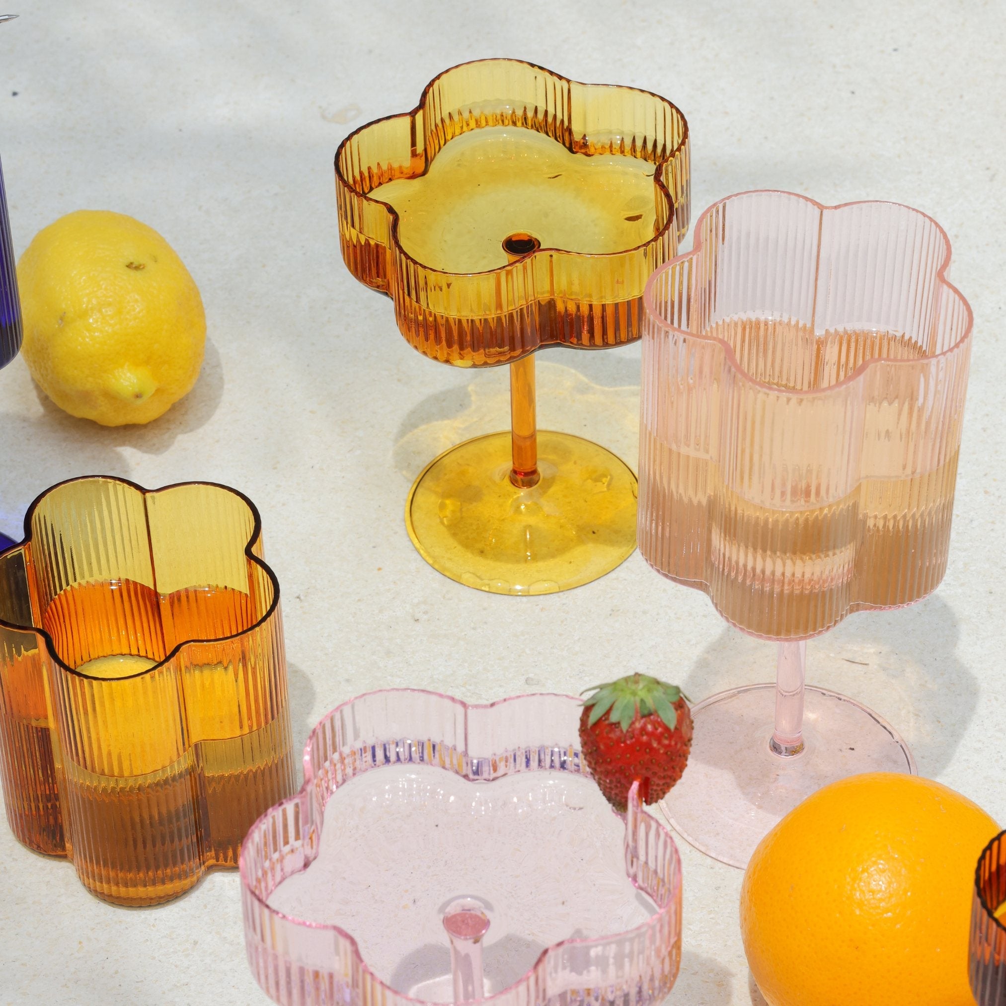 Uniquely crafted, flower-shaped glassware for picnics, parties and whimsical elegance at home.