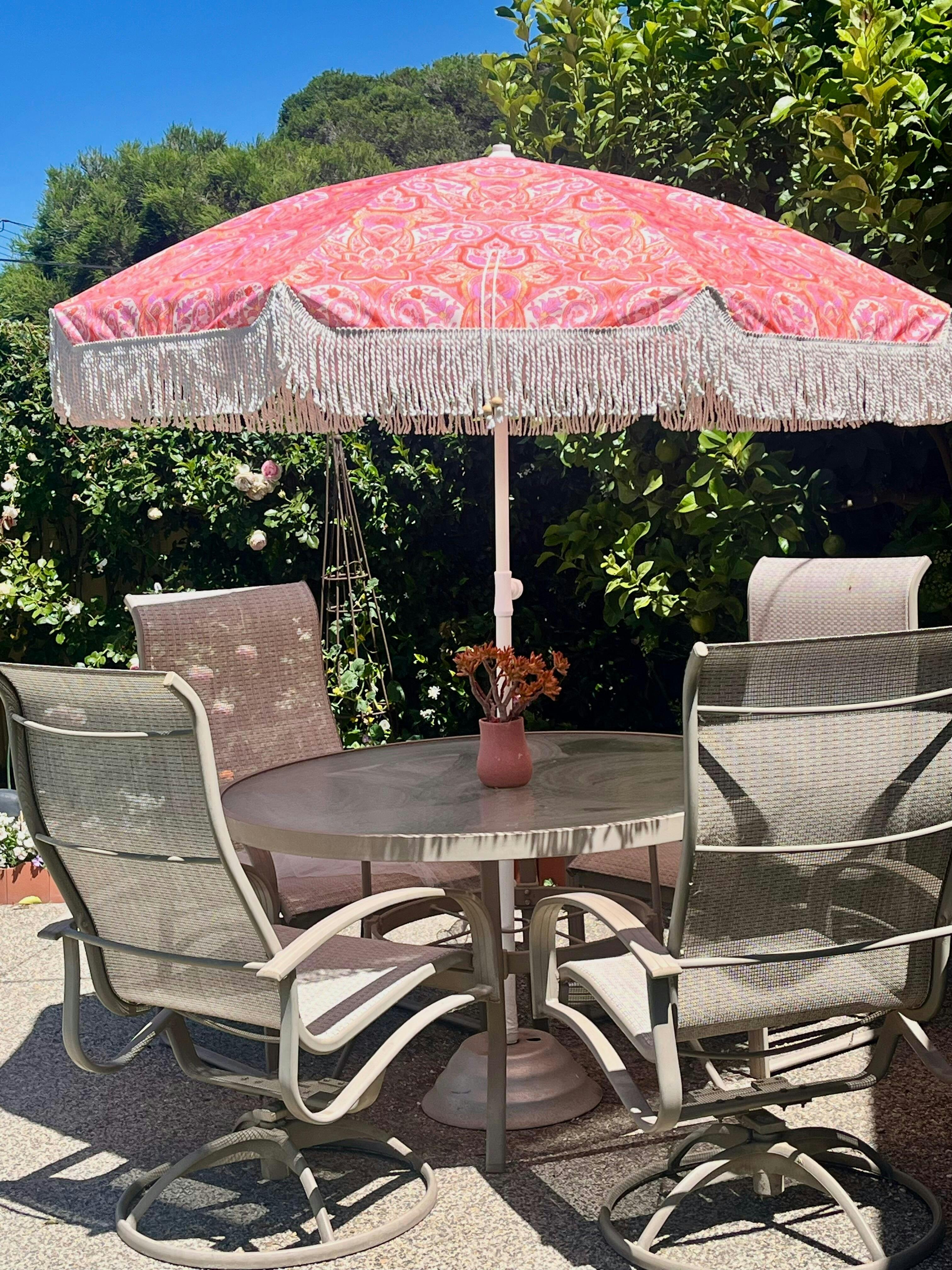 The Gardenia beach umbrella blends bohemian motifs with romantic florals in a lively patchwork of colour. Crafted with UPF50+ premium canopy fabric, a tilting mechanism and a matching carry bag, it’s designed for ease and longevity. Gardenia brings playful colour, comfort and practicality to long, sun-filled days by the water.