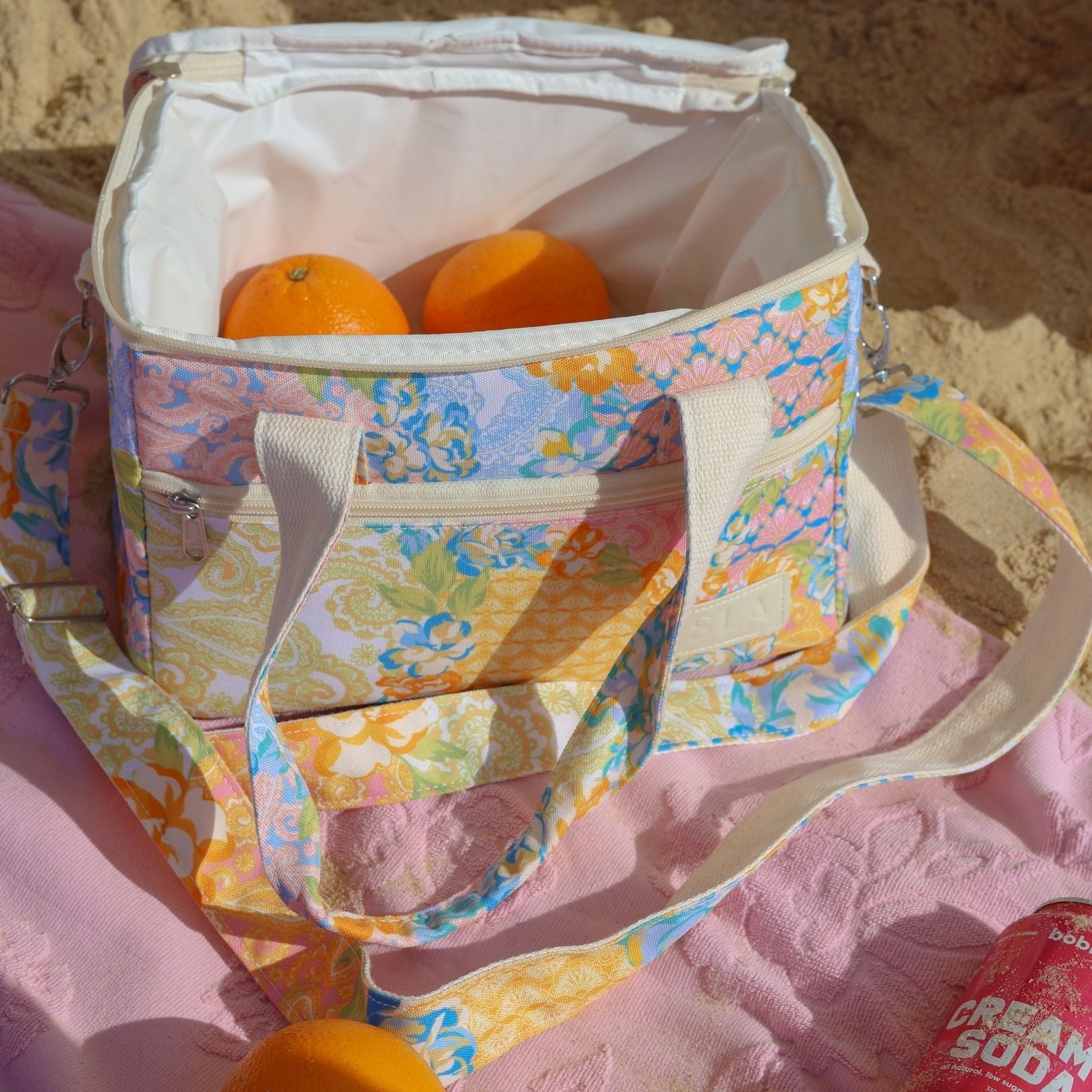 The Gardenia small cooler bag has a vibrant patchwork print of bohemian motifs and romantic florals. With insulation for freshness and easy to wipe-clean, Gardenia makes practical more playful. Spacious and versatile, it’s designed for picnics, beach days and weekend adventures.