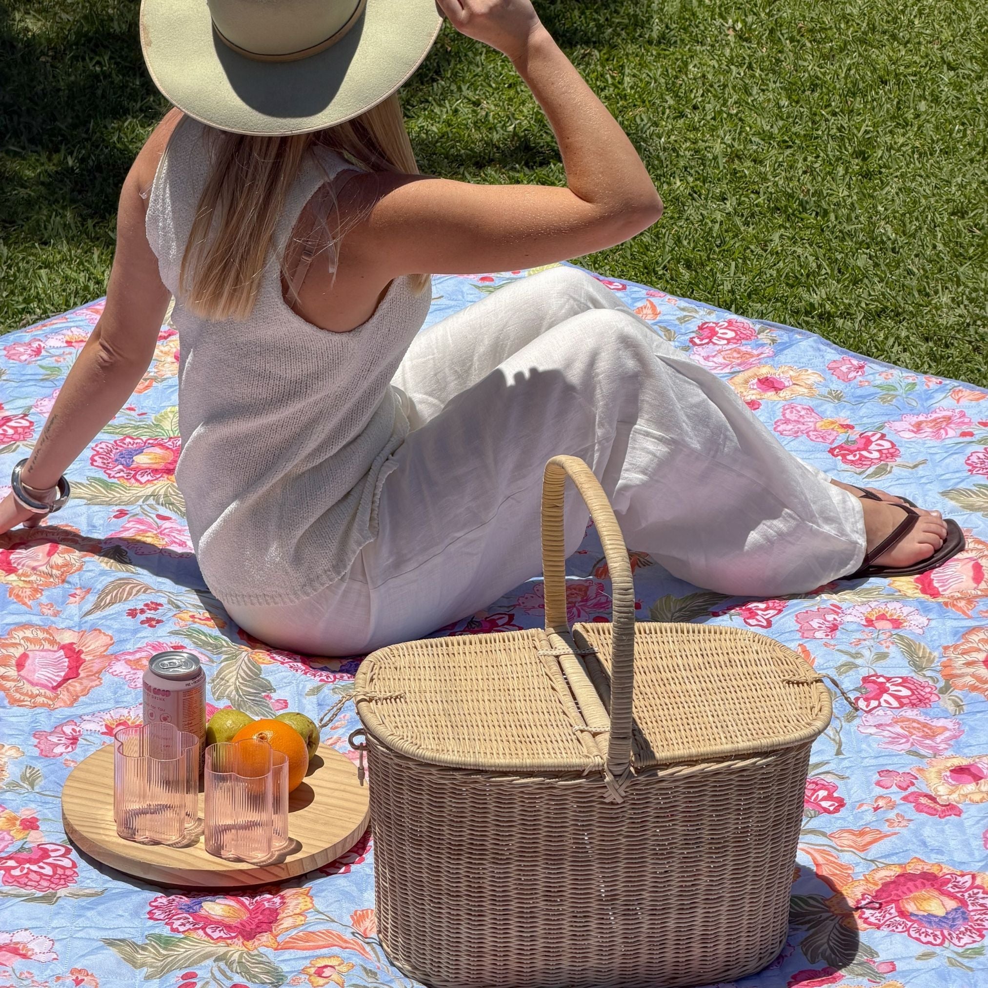 The Maisie Waterproof Picnic Rug brings artistry and elegance to outdoor living with vibrant hand-painted bohemian florals. Crafted with a waterproof top and base, it’s as practical as it is beautiful. Spacious, lightweight, and easy to carry, Maisie is perfect for family picnics, relaxed park days, and coastal escapes. A mat that celebrates creativity, comfort, and connection in every gathering.