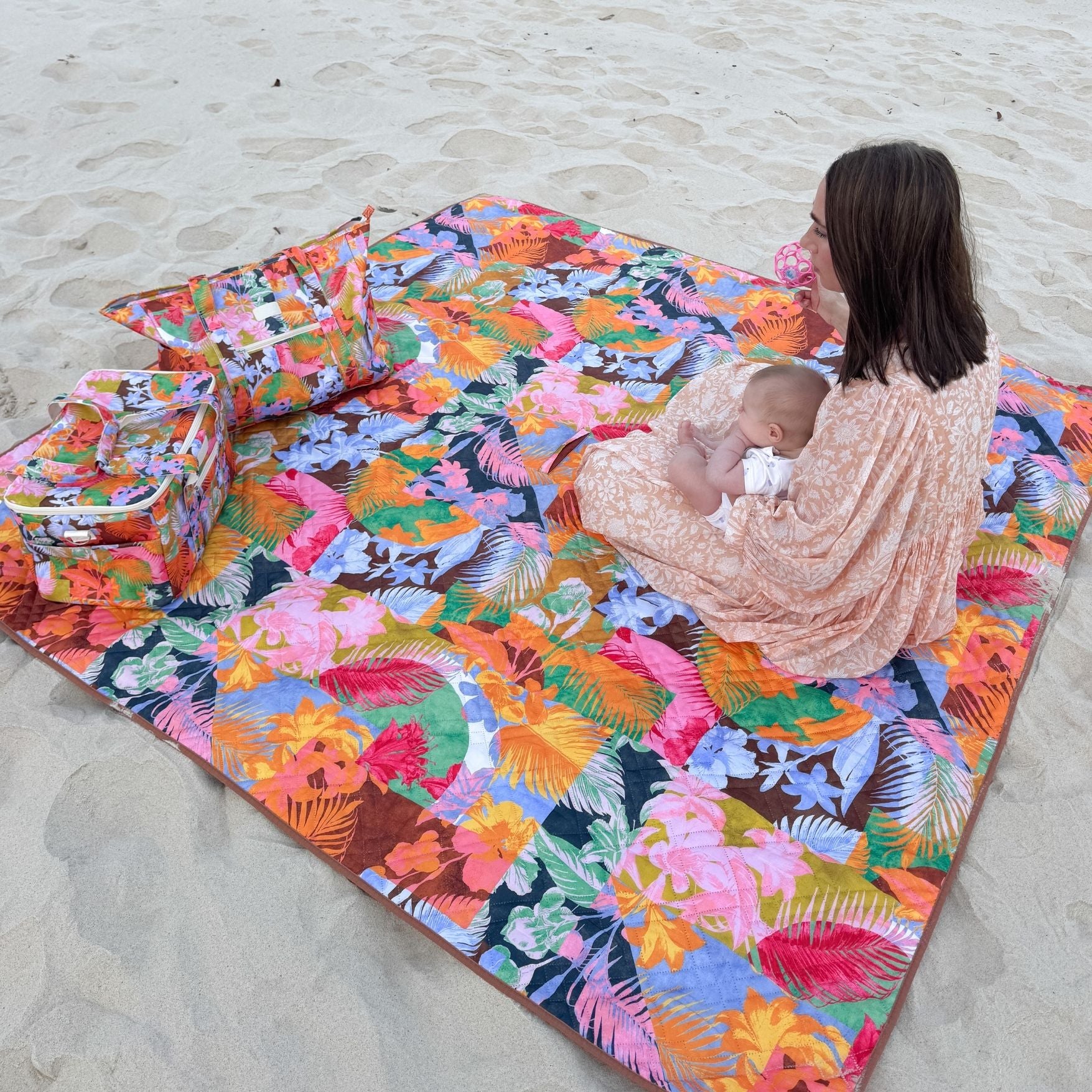The Tropic Waterproof Picnic Rug is bursting with colour, patterned with lush palms and vibrant tropical flowers. Its waterproof top and base makes every outing practical, comfortable, and carefree. Spacious, lightweight, and easy to carry, it’s perfect for beach escapes, park picnics, and family gatherings. Tropic transforms every outdoor moment into a vibrant island-inspired experience.